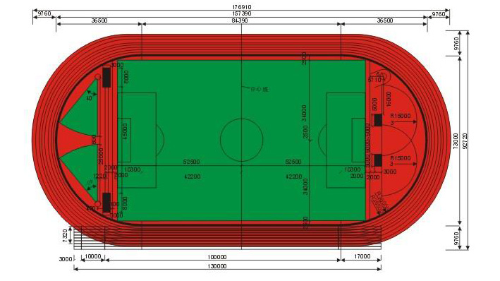 标准田径跑道平面图: